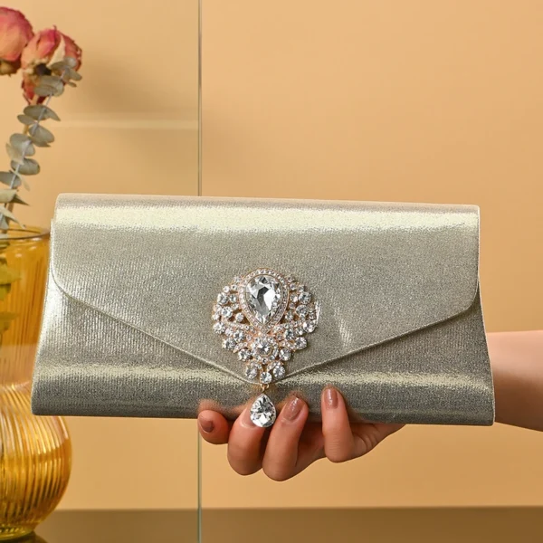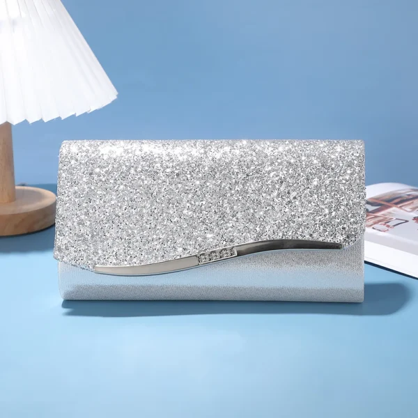 Wedding Bride Dinner Purse for Women Banquet Silver Clutch Bag Fashion Ladies Shinny Rhinestone Evening Bag