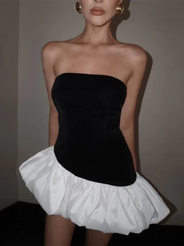 Trendix Women Slim Off Shoulder Dress Sexy Backless Patchwork Lace Up Backless Mini Dresses Club Casual Elegant Evening Dress