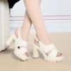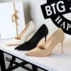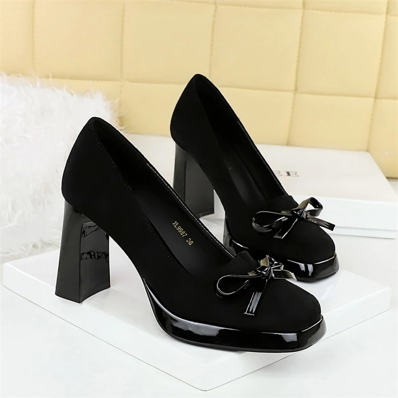 Korean Style Square-Toe Waterproof Platform High Heels Suede Bow Decorative Women’s Shallow Mouth Ultra High Heels Single Shoes