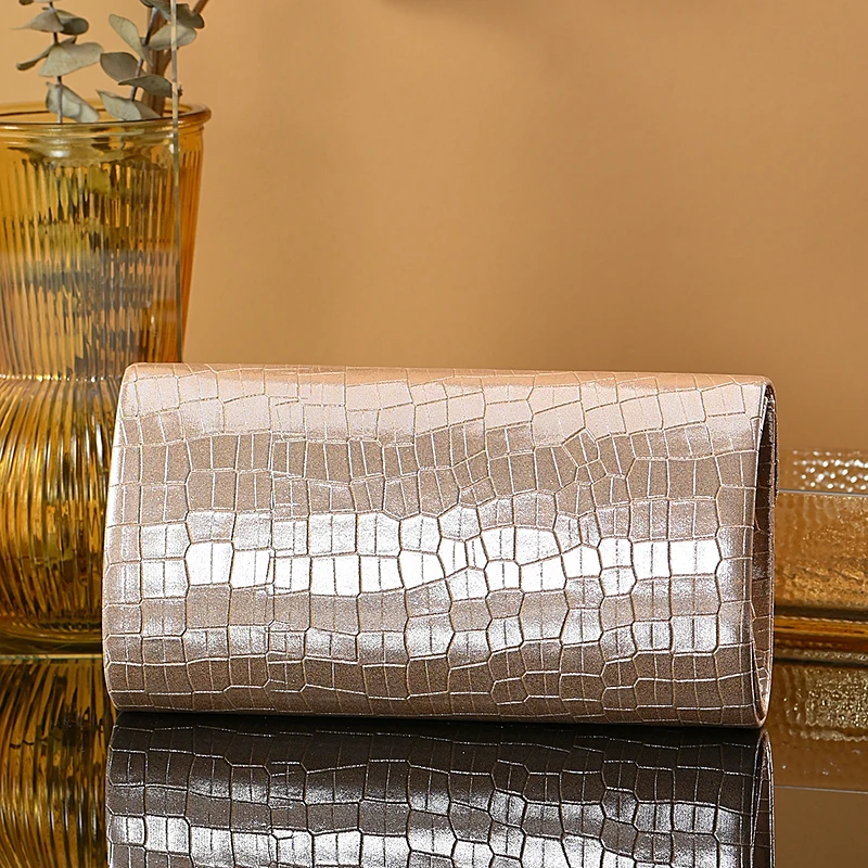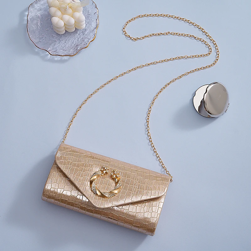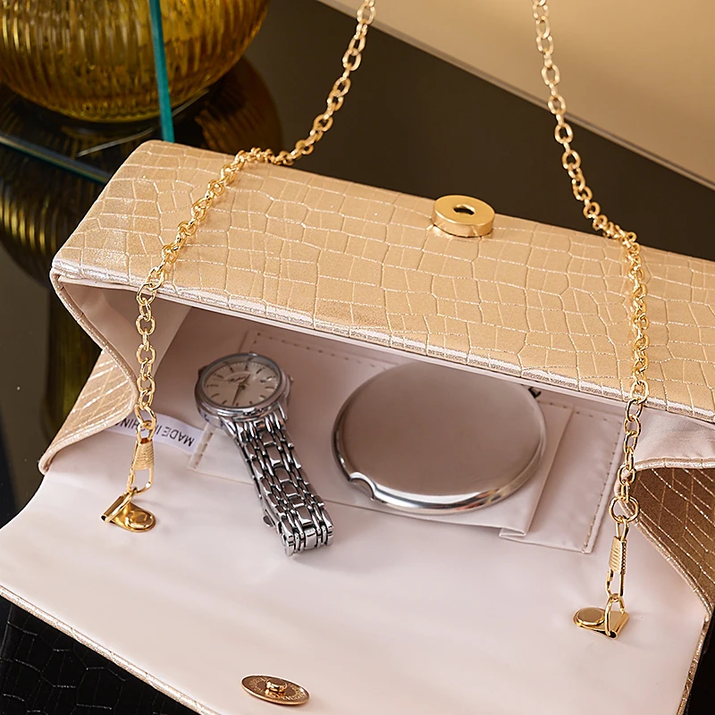 New stone print simple clutch bag Wedding party dinner bag Retro large capacity fashion clutch bag Metal chain shoulder bag