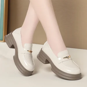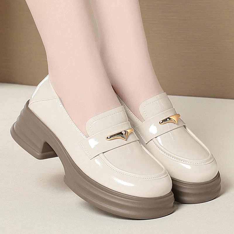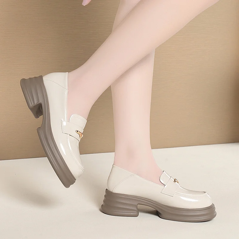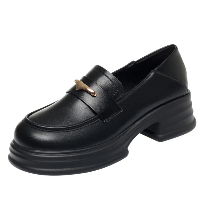 Thick-Soled Loafers Women’s Spring And Autumn New British Style Retro Sponge Cake Leather Shoes Thick Heel Black Single Shoes