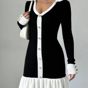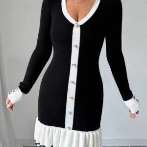 Trendix Elegant Knit Sweater Dress Women High Waist Slim Long Sleeve Cardigan Dress Ladies Party Fashion Knitted Evening Dresses