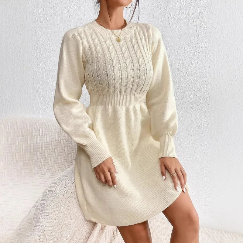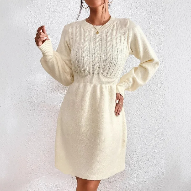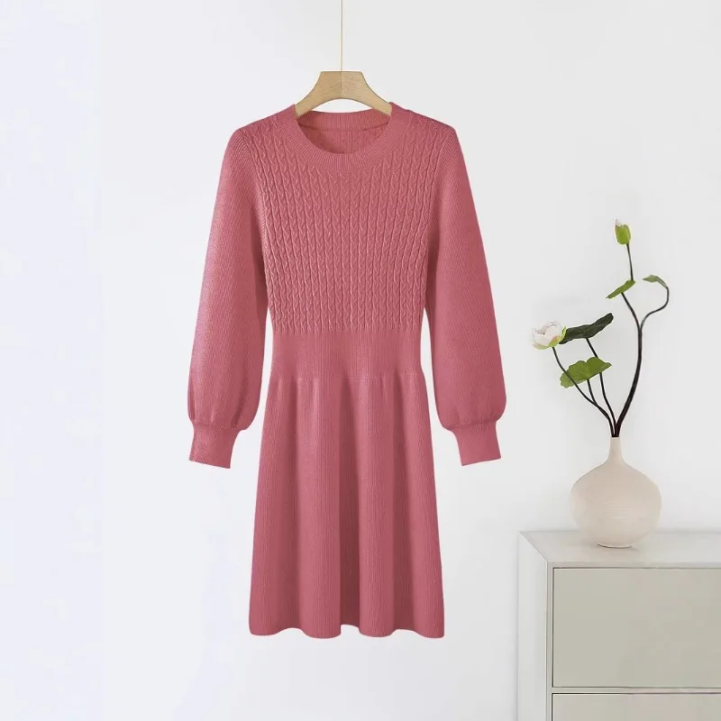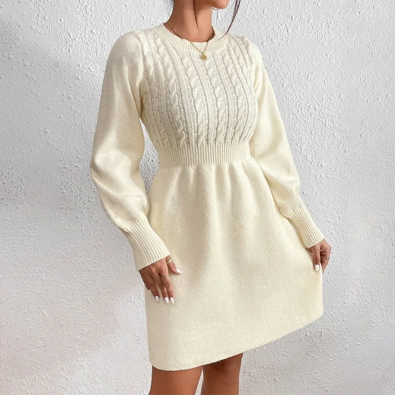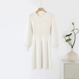 Trendix Patchwork Knit Dress For Women 2024 Autumn Winter High Waist Long Sleeve Mini Dresses Femme Vintage Elegant Party Dress